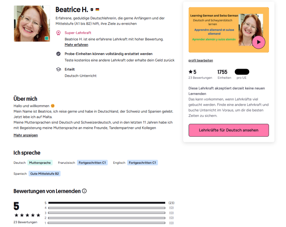 ✨5-star rated German tutor on Preply and LanguaTalk
