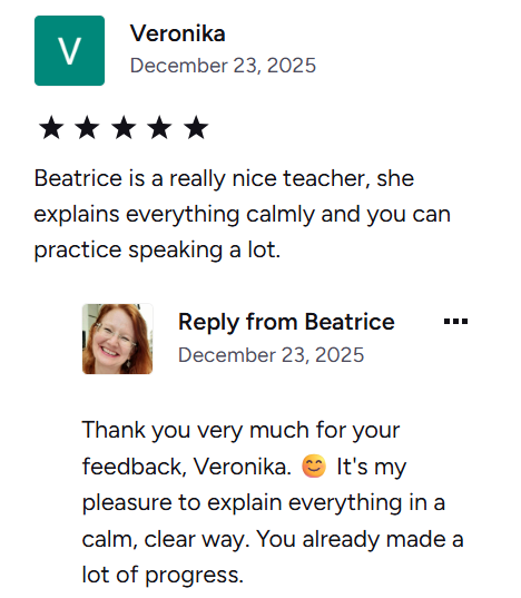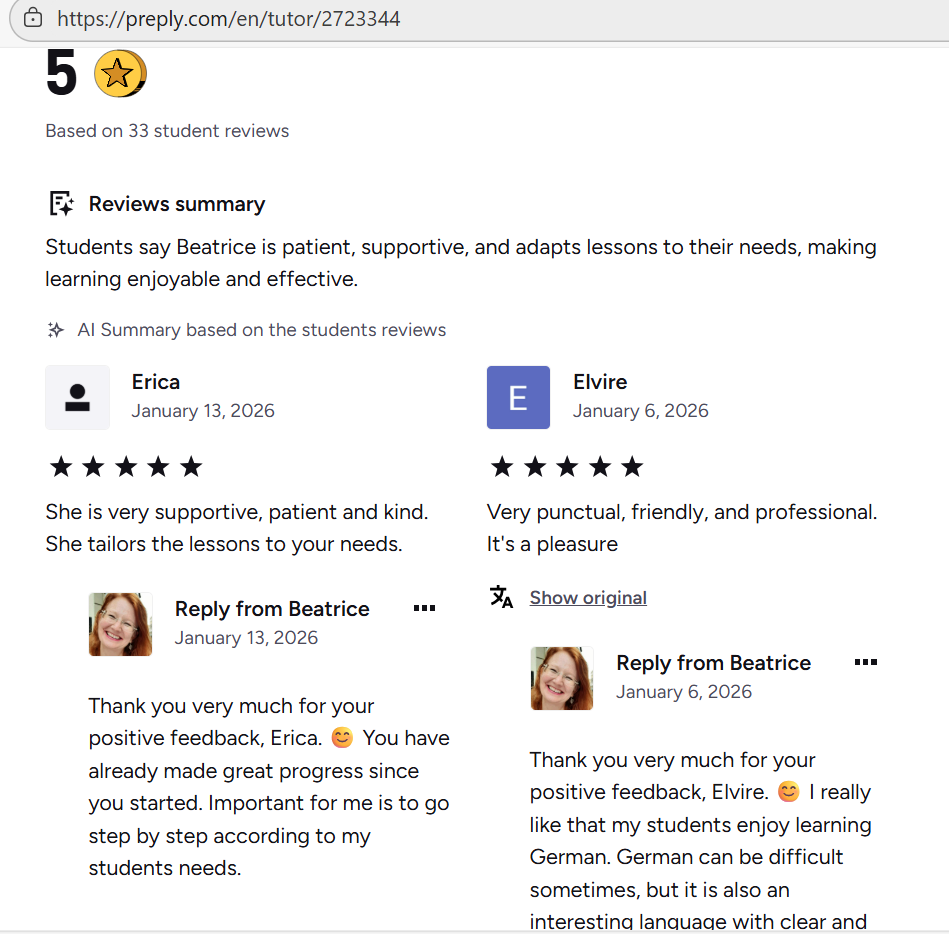 Testimonials from Customers I Supported in Their German Learning Journey: ๐ฏ๐๐ซ